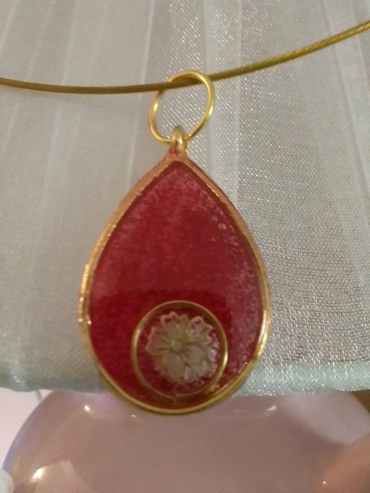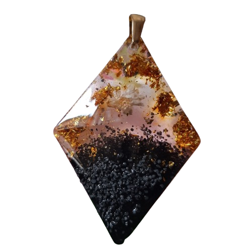 Ciondolo da donna in resina a forma di rombo con interno fiore