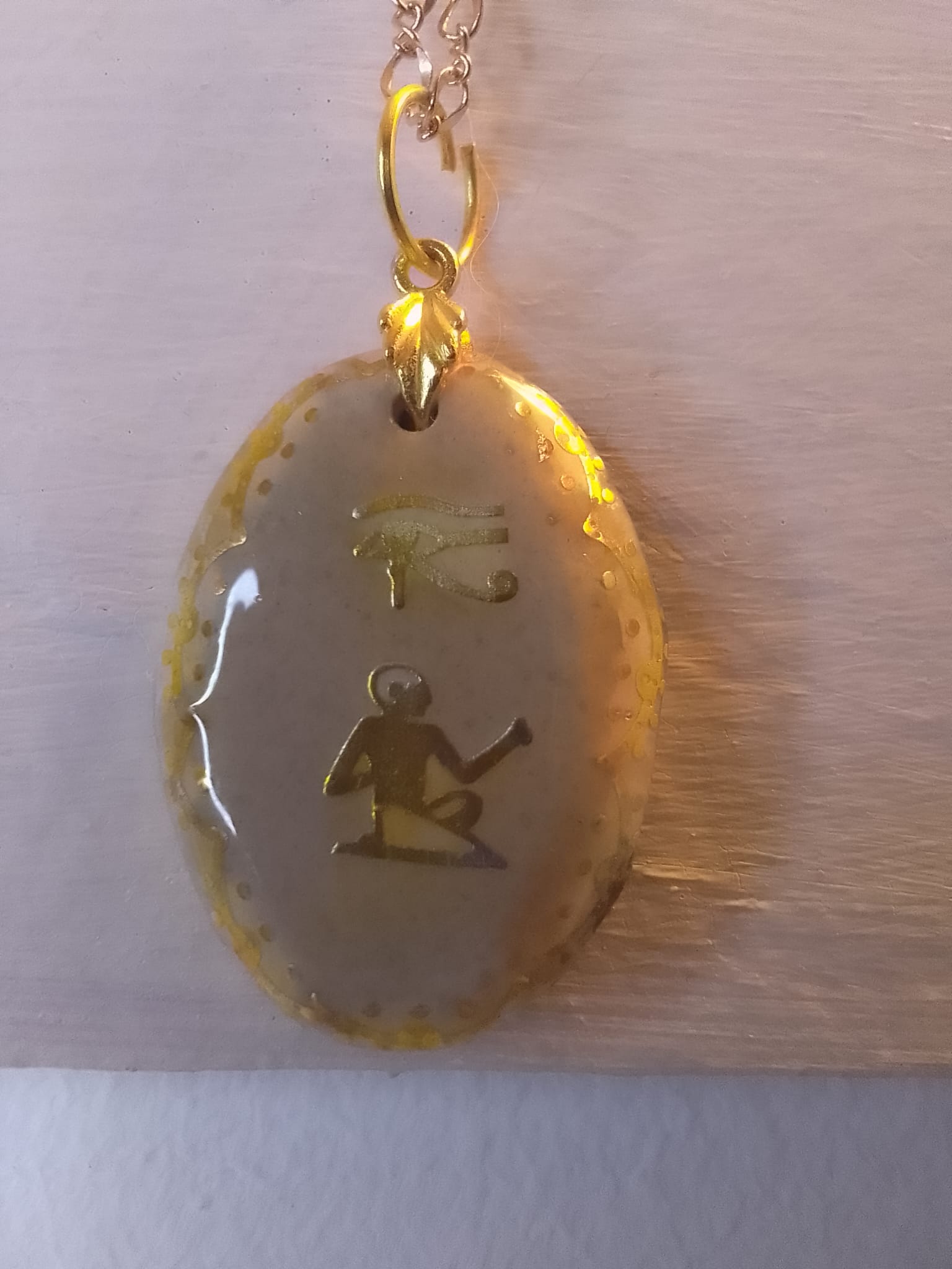 Ciondolo da donna di forma ovale in resina con decorazioni egizie