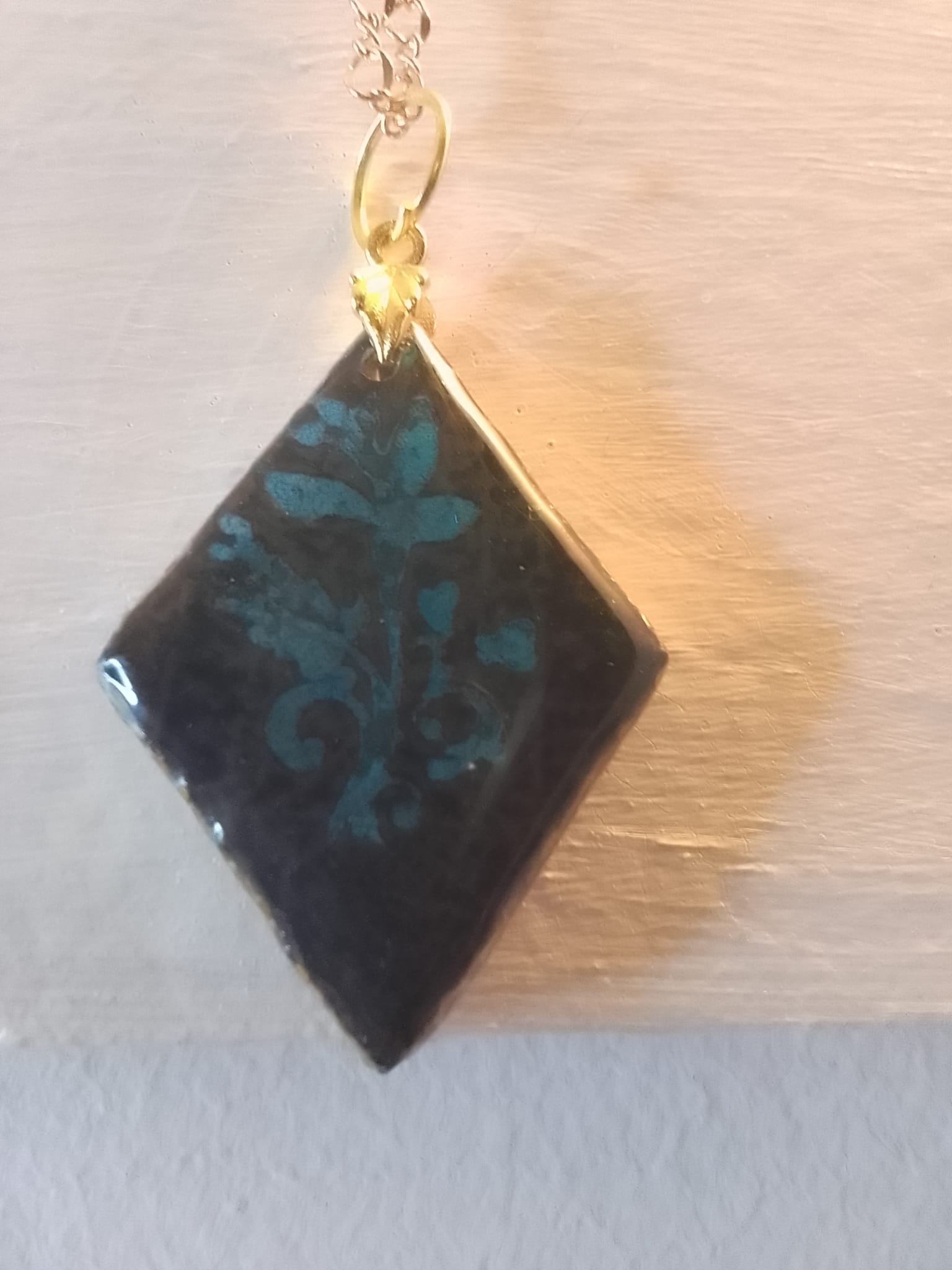 Ciondolo da donna in gesso a forma di rombo rivestito in resina con fiori dipinti