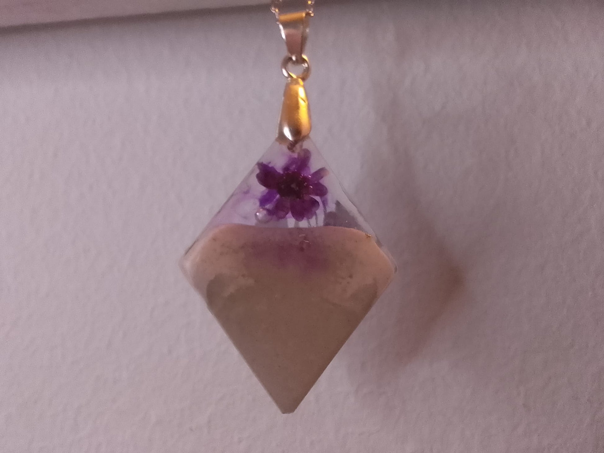 Ciondolo da donna in resina e gesso - rombo con fiori