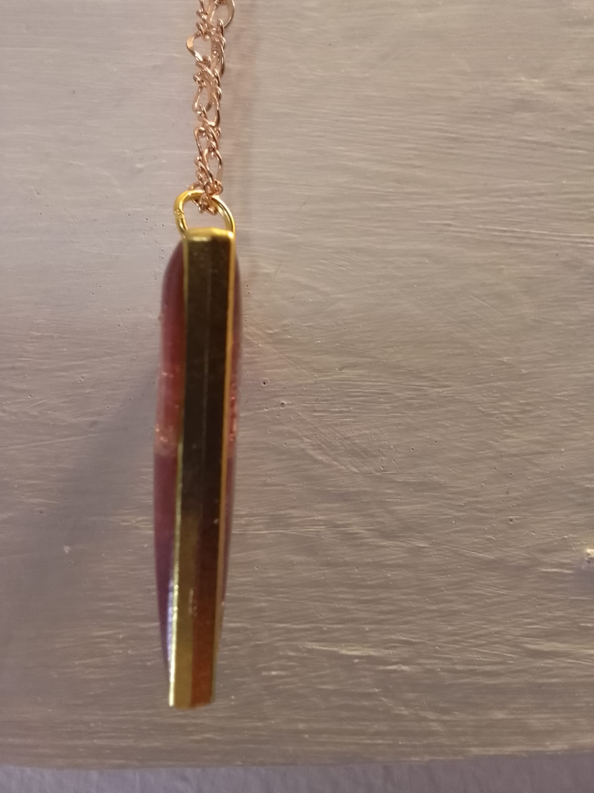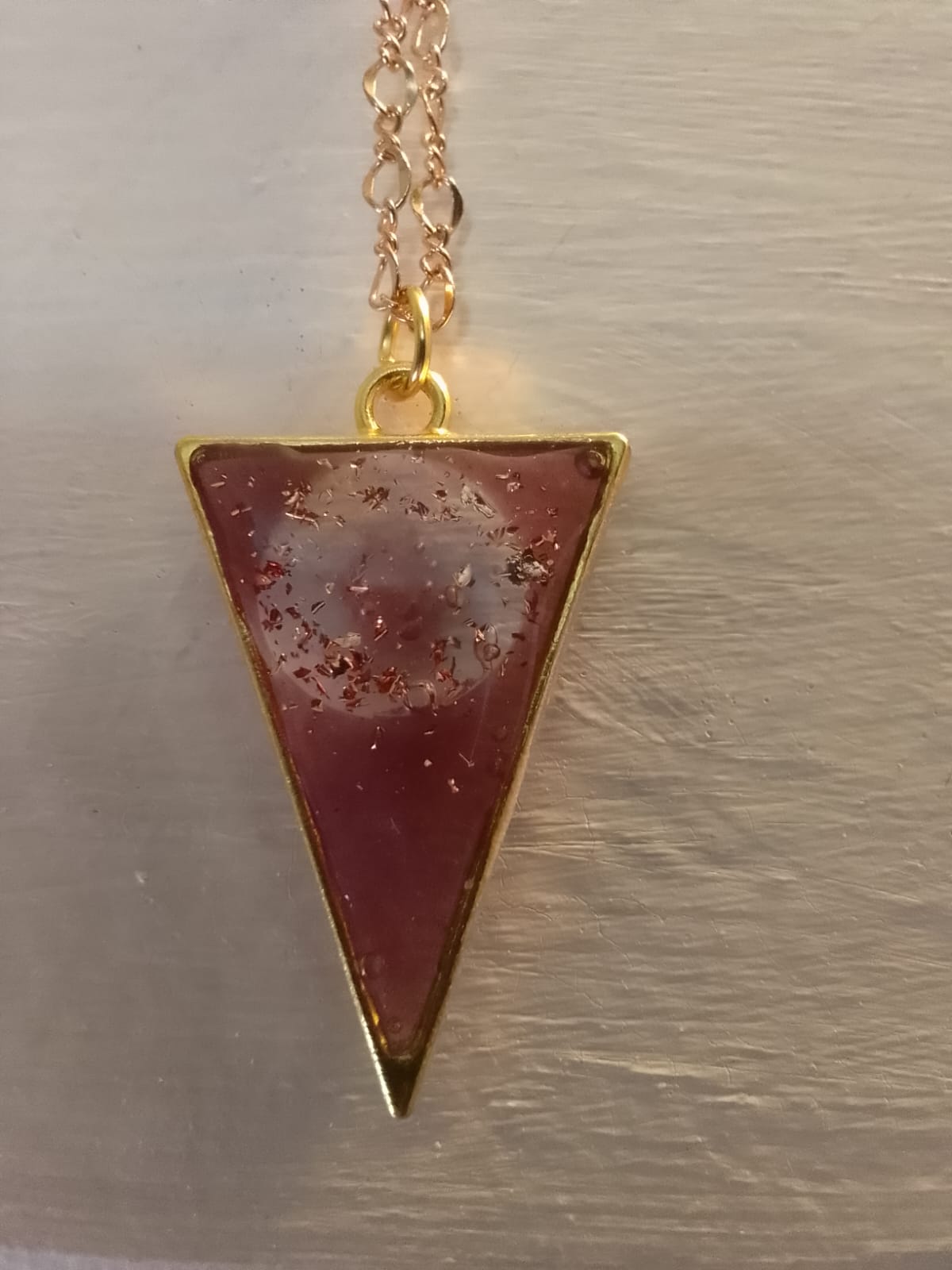 Ciondolo in resina a forma di triangolo, colore rosa antico, piccolo fiore centrale in resina.