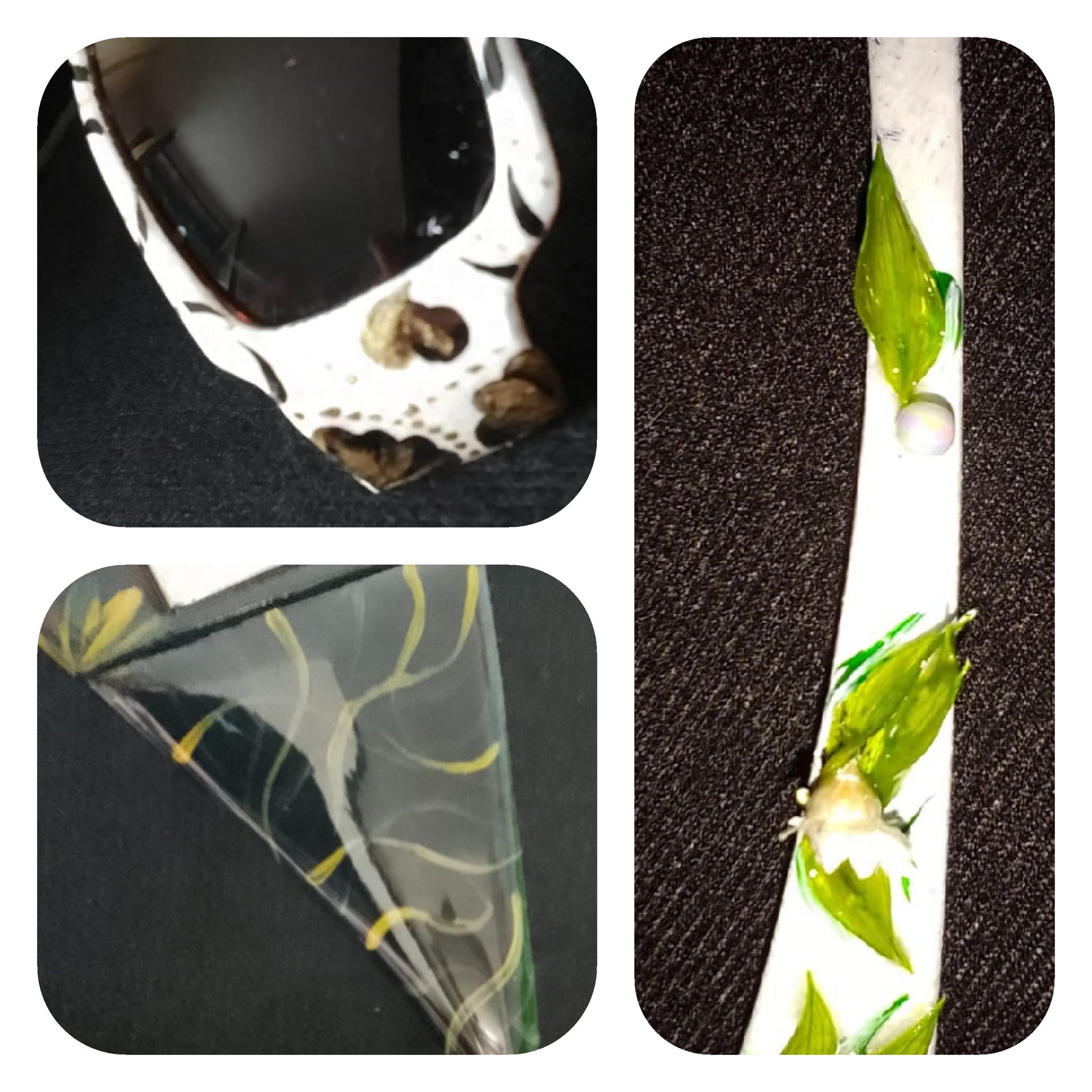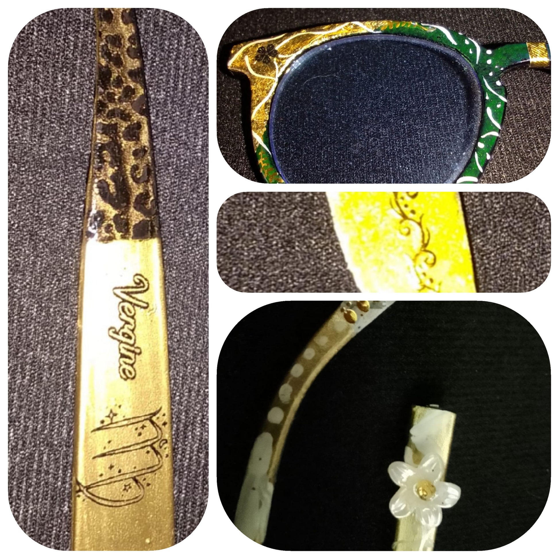 Le montature che realizzo non sono standard: ogni pezzo è decorato a mano, con resina, colori acrilici, incisioni con laser e dettagli unici che rendono gli occhiali originali ed esclusivi.