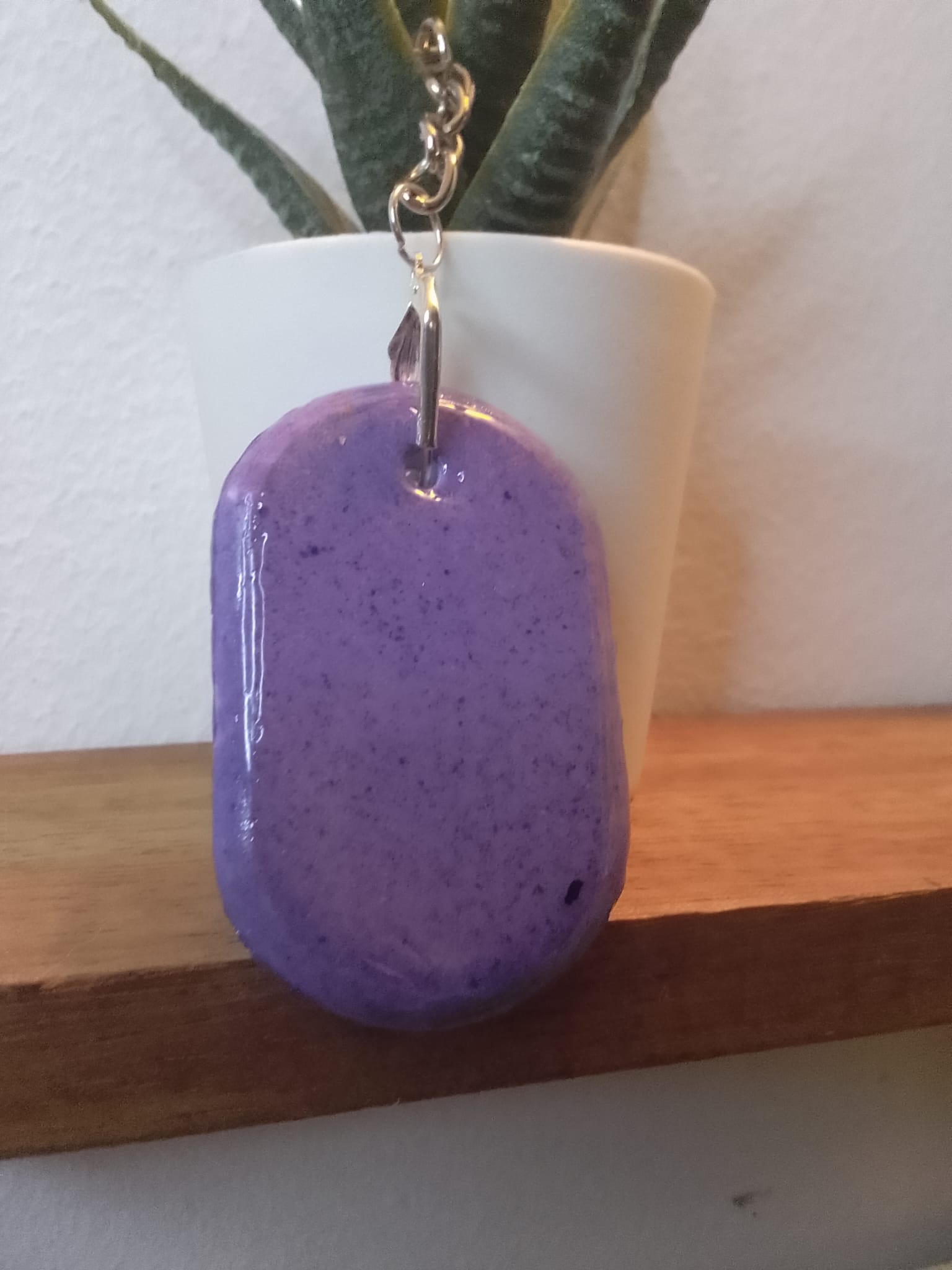 Portachiavi da donna in resina e gesso viola con decorazioni argento